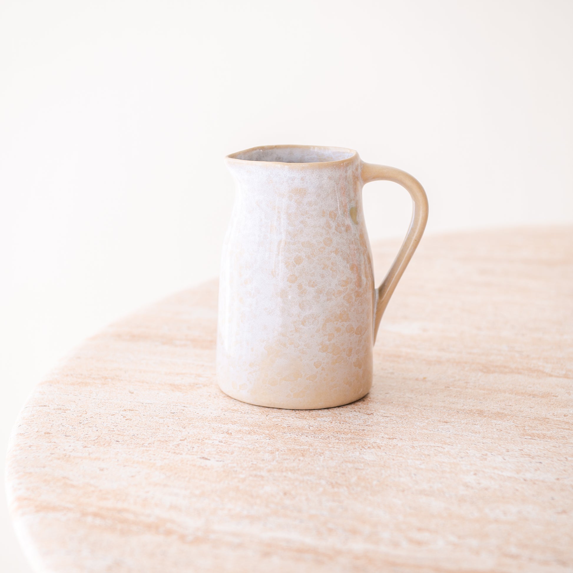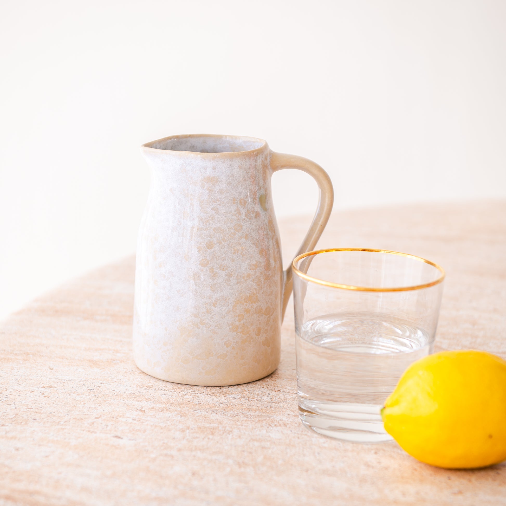 This beautiful carafe combines functionality with purist design. Handmade from high-quality ceramic, it impresses with its naturally shiny glaze. The ergonomic handle ensures comfortable handling - perfect for water, juice, milk or as a stylish vase.