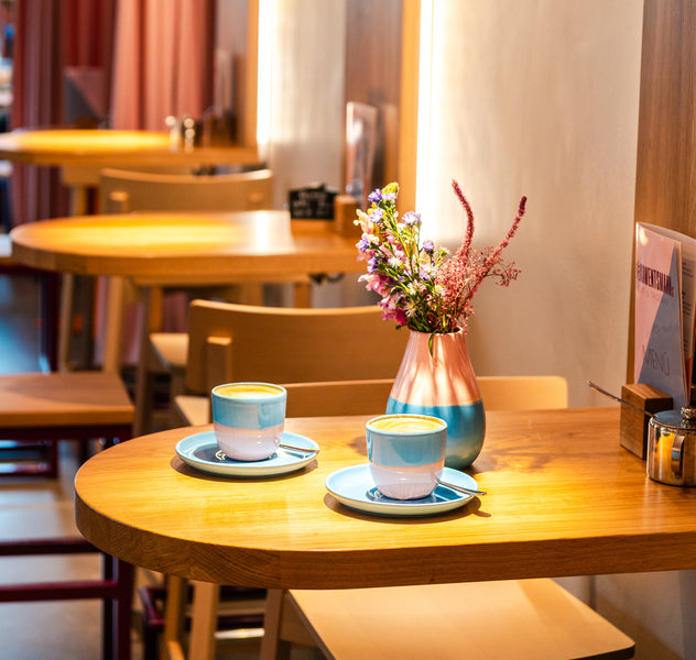 Das Unternehmen verwendet Geschirr und Dekoration von Vila Cerâmica im Café in Münster.